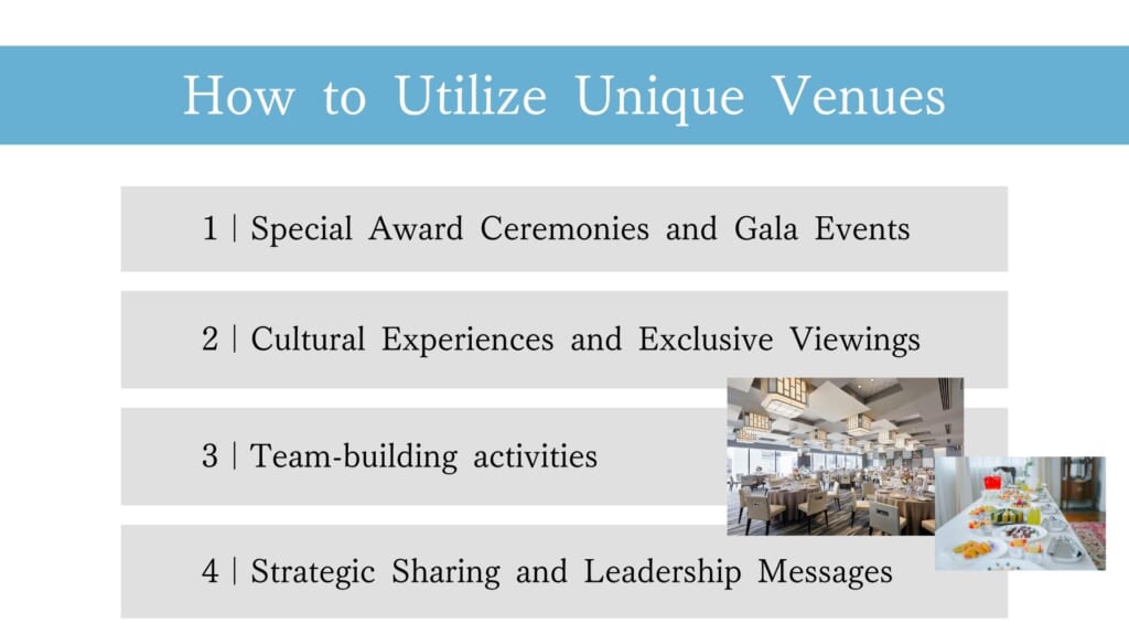 Incentive tours are not only a reward for participants but also a strategic investment in a company’s future. The unique venue-based programs we’ve introduced can effectively combine award ceremonies, cultural experiences, strategy sharing, brand storytelling, and team-building activities. Experiences in spaces rich with history and art deeply resonate with participants, fostering pride and empathy toward the company. The emotions generated through these experiences translate into increased motivation and improved performance after the tour. Incentive tours can be more than just trips—they can become “experiences that strengthen your organization.” Why not leverage the special atmosphere of unique venues as a starting point for future achievements?