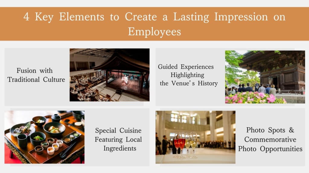 To achieve a banquet that resonates with employees, creating a “special experience” is key. Utilizing historical buildings allows for impressive setups in unique environments, fostering a cohesive atmosphere aligned with corporate culture. Incorporating traditional performing arts, narratives of the building, and local cuisine engages the senses and leaves lasting memories. Choosing a venue involves considering facilities, accessibility, historical value, and flexibility in arrangements. Collaborating with professionals from the planning stages ensures smooth execution. Unforgettable experiences enhance employee motivation and cohesion.